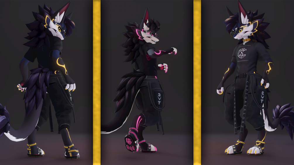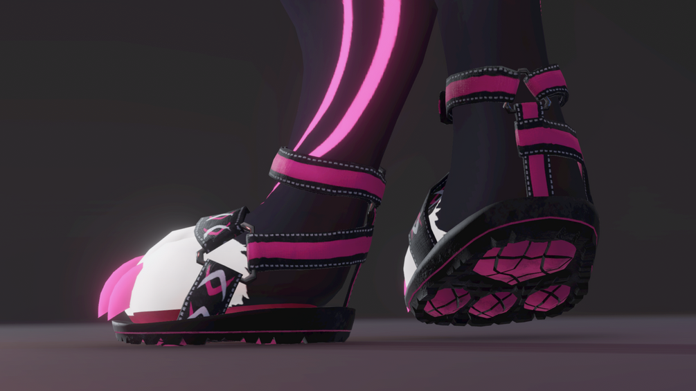 Novabeast cloth, tech shoes/sandals, Sho01, with Hue change, emission, AudioLink, and skin change function.